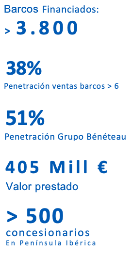 Para el leasing se financia barco nuevo, en caso de barco de ocasión se ofrecería un contrato de crédito. El promedio de los contratos está en torno a los 100.000 euros por embarcación, siendo las esloras a partir de los 8 metros las más comunes a financiar hasta el momento. Si bien, se pueden financiar esloras inferiores, segmento muy relevante en el mercado español, y donde estamos trabajando actualmente para ofrecer nuevas soluciones de financiación a parte de las existentes.