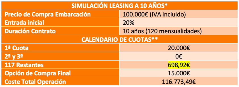 Por tanto, el efecto forfait (IVA reducido) se ha visto neutralizado por leasings con incremento del valor residual (Leasing Ballon) que, permite mantener o reducir el alquiler mensual que se pagaba con el IVA reducido. Al final del contrato el cliente puede renovar su embarcación cediendo dicho valor residual o proceder a su pago para obtener la titularidad de la misma.
