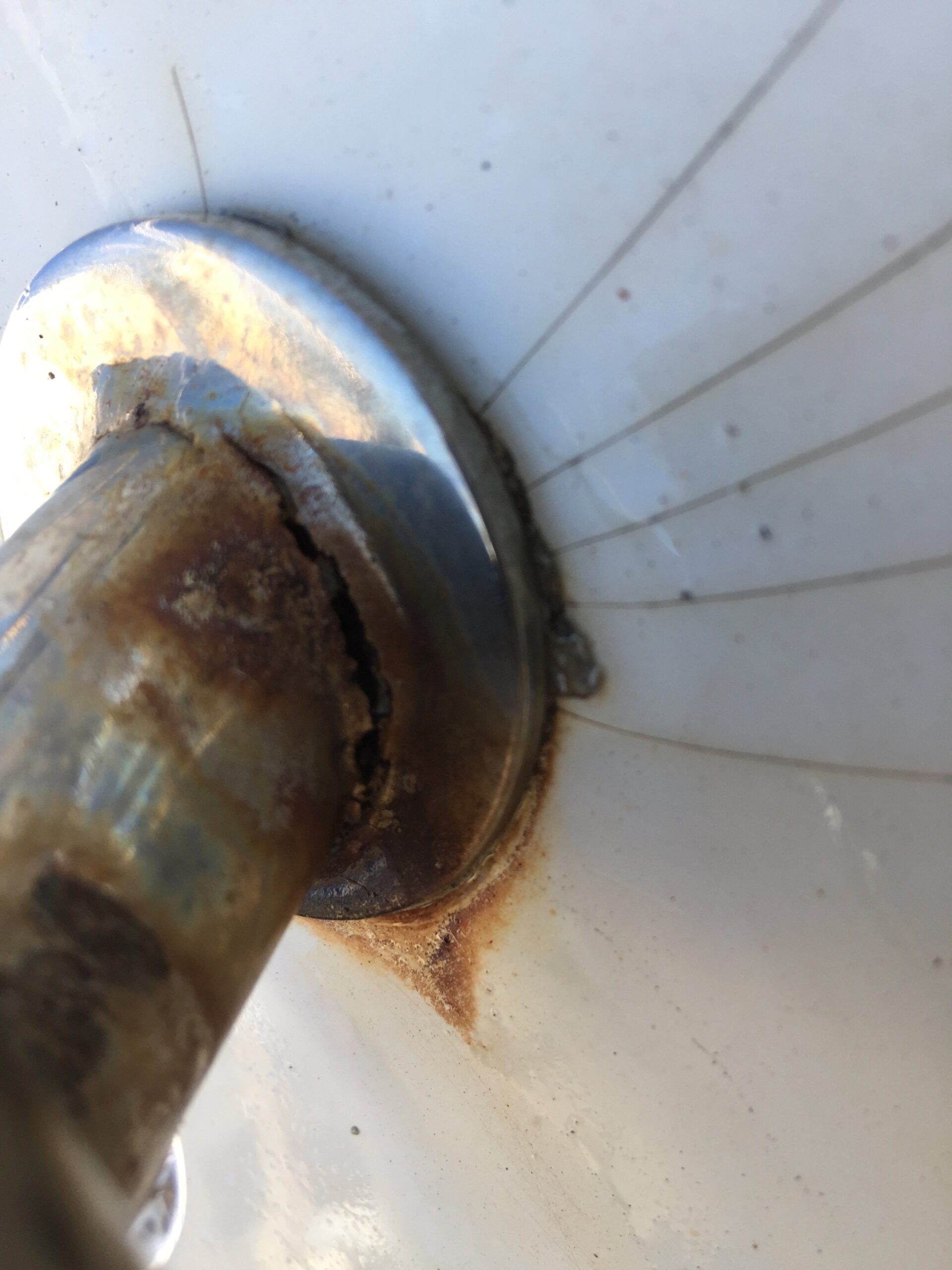 No es infrecuente encontrarse con pasacascos que han sufrido corrosión. En este caso, la junta del pasacasco y la válvula muestran signos evidentes de falta de estanqueidad, y el material ha sido dañado por corrosión. Es imprescindible sustituir ambos elementos urgentemente