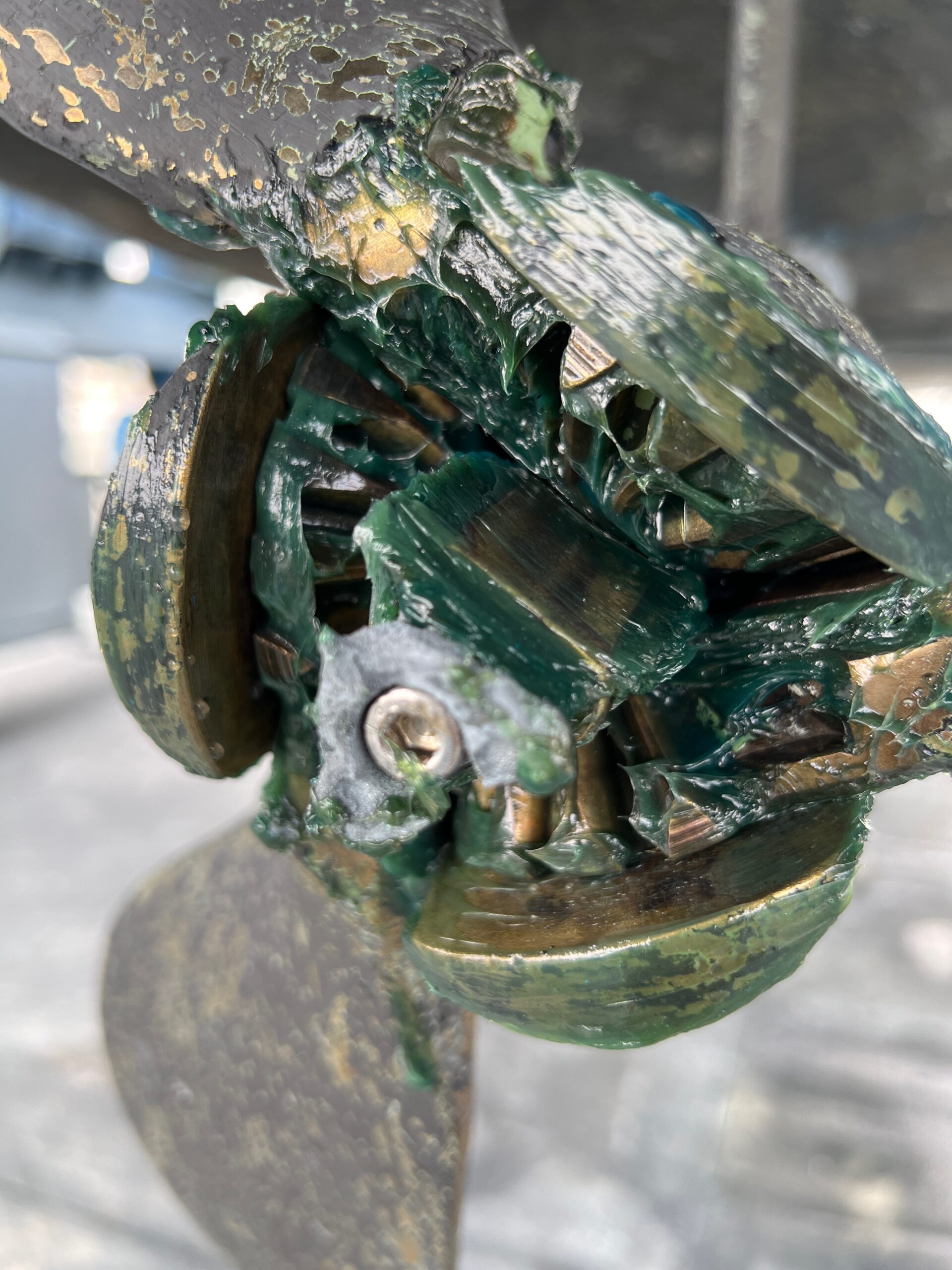 Las hélices suelen verse afectadas por dos problemas principales: descincificación y deformaciones. La descincificación suele ocurrir normalmente cuando un ánodo de sacrificio pierde su función, sea por desgaste o por un falso contacto. Las hélices están fabricadas con una aleación de bronce que contiene zinc. Cuando el ánodo falla, el zinc de la hélice reemplaza esa función y actúa como ánodo, perdiendo moléculas y debilitando por lo tanto la estructura misma de las palas. Cuando esto ocurre es recomendable sustituir la hélice ya que el daño crecerá con el tiempo.