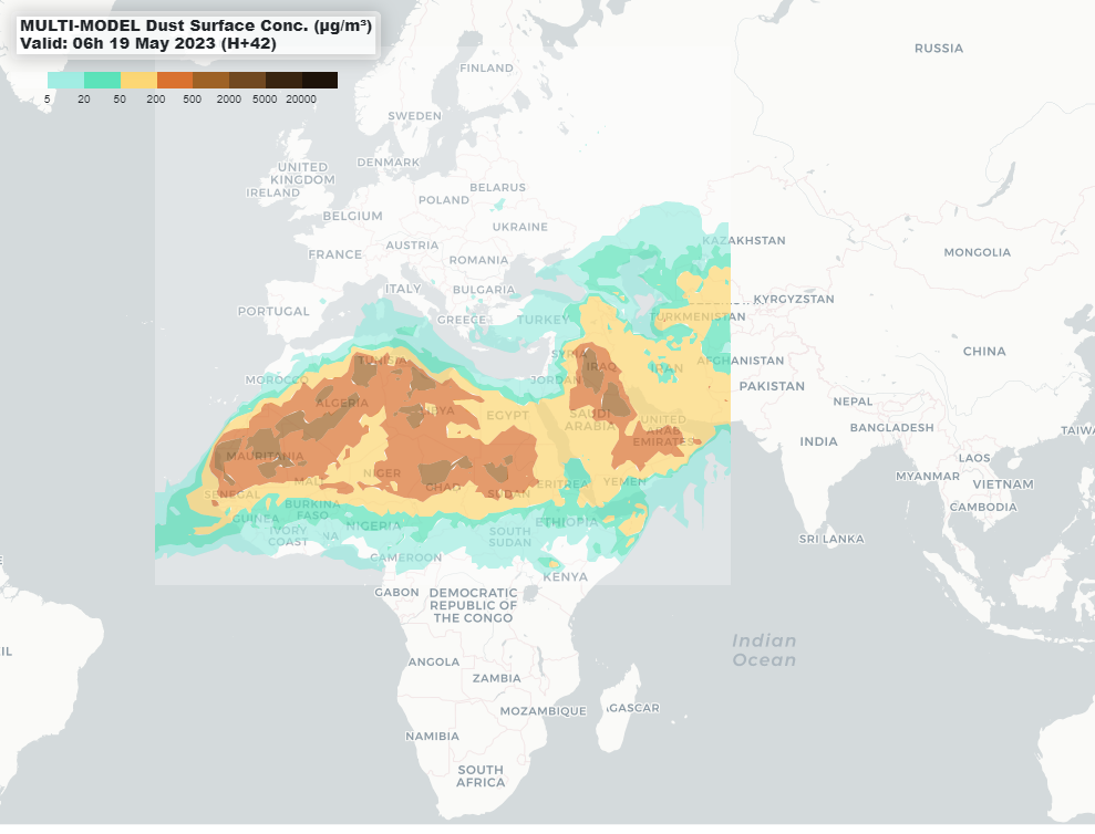 El Centro de Predicción de Polvo de Barcelona es el primer centro meteorológico regional de la Organización Meteorológica Mundial especializado en la predicción atmosférica de polvo y arena. La previsión cubre el norte de África, Oriente Medio y Europa.