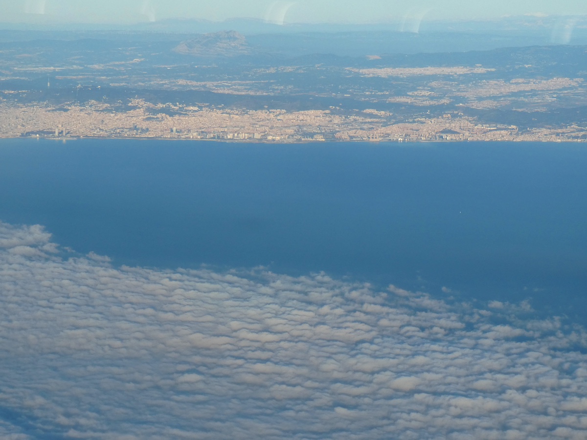 La fotografía muestra el brazo de niebla que se colaba en la llanura de Barcelona a través del canal del río Besós procedente de tierras interiores. Un fenómeno bastante habitual en situaciones anticiclónicas con inversión térmica, cuando el aire frío de la depresión prelitoral baja por los ríos y torrentes hacia el mar.