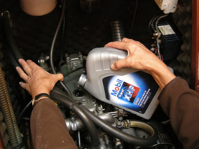 En principio, previamente al invernaje, habremos engrasado los cables del acelerador y del inversor. Asegúrese de que estén funcionando bien y si es necesario límpielos y aplique grasa. Ya le aconsejamos en su momento que cambiase el aceite del motor y del inversor durante el invernaje para evitar dejar aceite usado cargado de partículas metálicas en el motor. Si siguió este consejo, solo necesita tener el nivel correcto y el aceite limpio. Algunas personas le dirán que no hay que vaciar el cárter antes del invernaje, que el nuevo que pasará todo el invierno en el motor, se oxidará y por tanto aconsejan cambiar el aceite al principio de la temporada. Esto era cierto hace unos años. Pero hoy los aceites han evolucionado mucho y todos tienen antioxidantes para estabilizarlos.
