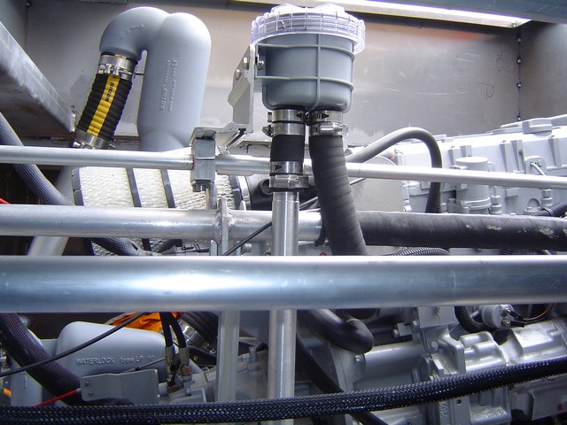 Cuando el motor está en marcha, el primer punto a comprobar es la salida del agua de refrigeración. Si no fluye, el motor debe detenerse inmediatamente y el circuito de agua de mar debe revisarse desde la toma de agua (válvula) hasta el impulsor de la bomba. Si el circuito simplemente se desactiva, a menudo poniendo agua directamente en el filtro es suficiente para volver a cebarlo. Si esto no es suficiente, retire la tapa de la bomba de agua y examine su impulsor.