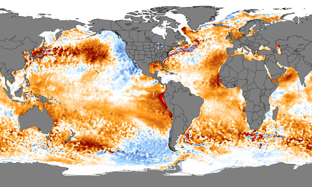 Un estudio de la Administración Nacional de los Océanos y de la Atmósfera (NOAA) de Estados Unidos anunció que la temperatura media de la superficie de los océanos alcanzó 21.1 °C el 5 de abril, un cifra récord. Si bien los datos principales se han obtenido desde satélite, éstos han sido corroborados y verificados por las medidas tomadas por las boyas marinas y los barcos.