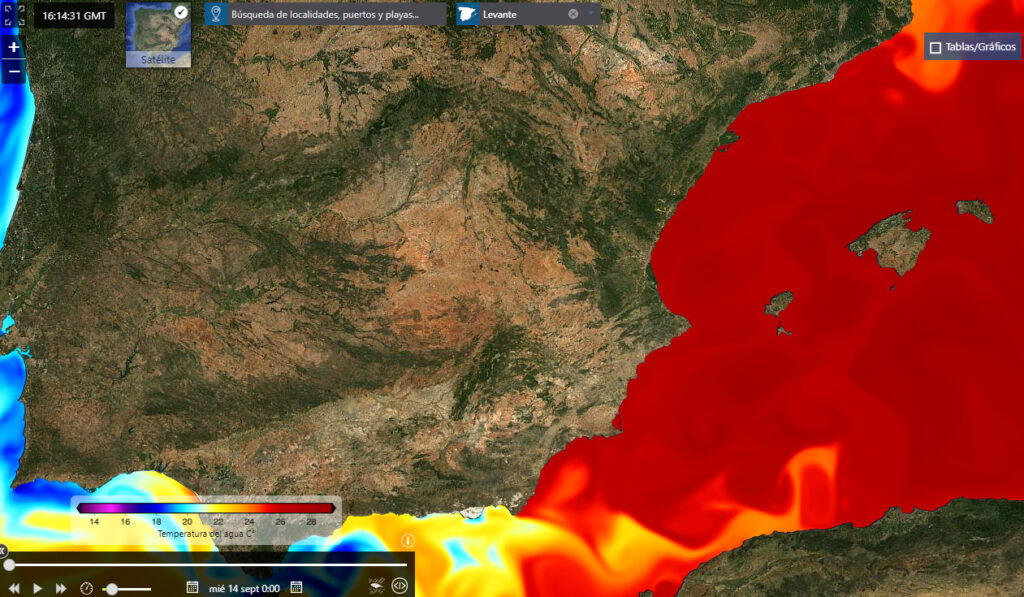 A principios de este setiembre de 2023, una DANA mezcló el agua superficial con aguas más profundas y la temperatura se acercó a valores más normales. Las tramontanas, gregales y levantes han mezclado las aguas más cercanas a la superficie del mar con otras más profundas, con el resultado de una bajada de la temperatura superficial del agua del mar. En el siguiente mapa, de 3 de setiembre de 2023 se aprecian valores sensiblemente más bajos que los del setiembre de 2022.