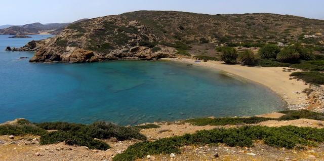 Más al norte, en la bahía de Palaikastro, el paisaje se suaviza y el verde de los olivos se acerca al azul del mar. Y un poco más allá, la bahía de Erimoúpolis ofrece el espectáculo de los bosquecillos de palmeras cretenses flaqueando la playa y escondiendo las ruinas de Ítanos, una antigua ciudad romana. El Cabo Síderos, estrangulado dos veces como si quisiera convertirse en isla, despide al navegante para dejar paso al turbulento canal que separa a Creta de Kasos, la primera isla del Dodecaneso.