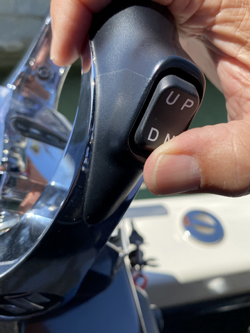 Se activa mediante un pulsador eléctrico ubicado en la cabeza de la palanca de aceleración y permite cambiar el ángulo de empuje de la hélice. Por lo tanto, dependiendo de éste, el asiento del barco varía según la posición del motor o la transmisión. Es decir, del ángulo de ataque de la hélice con respecto a la horizontal del barco.