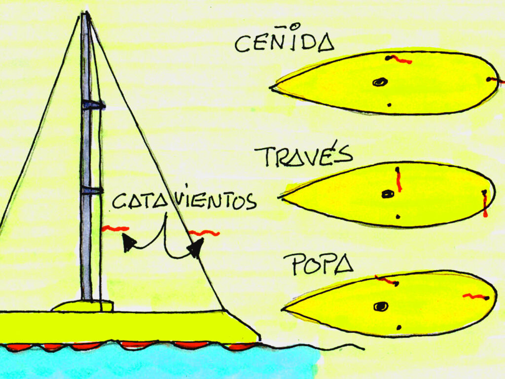 Los catavientos en los obenques y en el backstay permiten conocer in situ la dirección del viento aparente. Hay que pensar que el aparente siempre sopla de más a proa que el real, que en ceñida la intensidad del viento aparente es superior al real, en el través más o menos se igualan y en popas la intensidad del aparente siempre es de menor que la del real. El viento aparente es la suma geométrica del vector de viento real (intensidad y dirección) y el vector de la velocidad del vehículo (rumbo y velocidad)