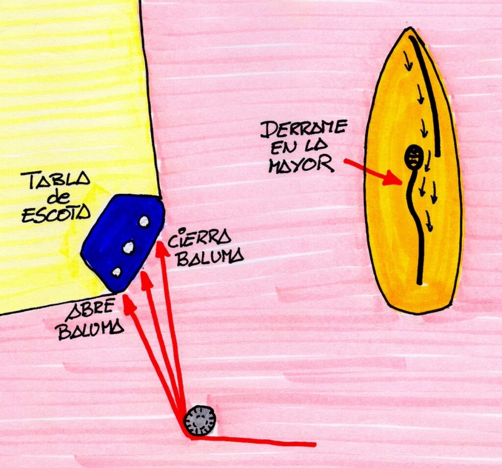El control de la baluma se lleva únicamente desde la tensión de la propia escota al no existir posibilidad de reglaje independiente.