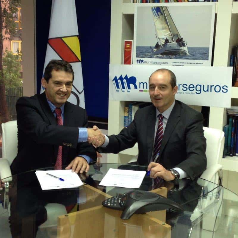 Momento de la firma de acuerdo en la que aparecen a la izquierda el Presidente de la Real Federación Española de Vela, José Ángel Rodríguez y a la derecha Julio Cesar Muñoz, Subdirector General de Murimar Seguros. Murimar Seguros, aseguradora oficial del Mundial de Vela Santander 2014 por Pol Quintana14 de julio de 2014