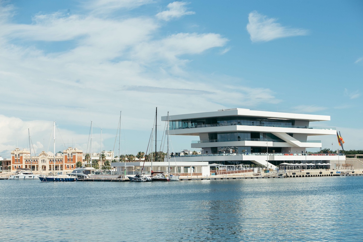 El interior de Veles e Vents ofrece un espacio privilegiado para charlas, conferencias y encuentros, así como diversas opciones gastronómicas para completar la jornada. El espacio está gestionado por Grupo La Sucursal, todo un referente en la gastronomía valenciana, que ha sido reconocido con Estrellas Michelin (2005, 2008) y Dos Soles Repsol (2024) y cuenta con la dirección de Javier de Andrés, Premio Nacional de Gastronomía.