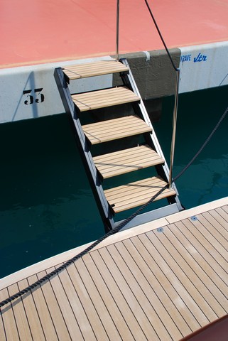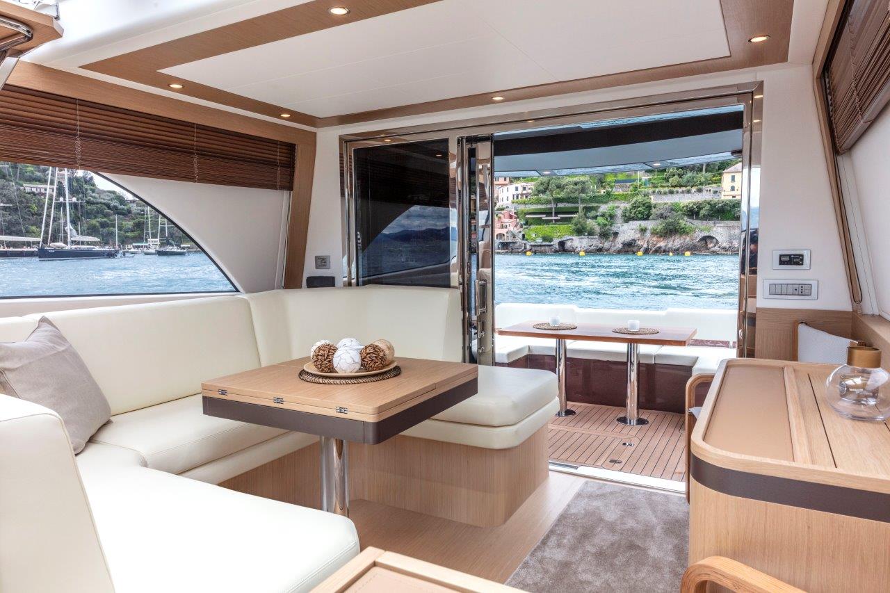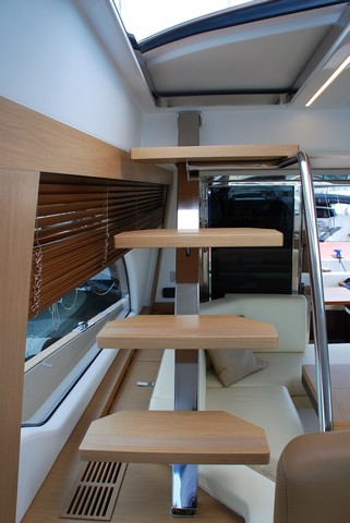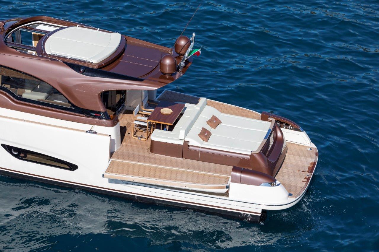 Esto se hace evidente en los accesos cómodos por la plataforma de popa, con la magnífica escalera creada por la firma pero desarrollada por Besenzoni, los amplios pasillos laterales a pie plano hasta la proa atulipada, con las bordas altas que confieren seguridad y facilidad de movimiento, o la puerta lateral de pantógrafo del puesto de gobierno que permite acceder fácilmente a la banda. Pero también la caseta —construida totalmente en carbono para no elevar el centro de gravedad — cuya altura y proporciones ofrecen desde el interior la sensación de estar en un barco mucho mayor.