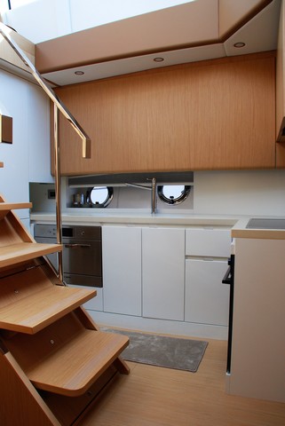 En la versión de tres o cuatro cabinas, la cocina se desplaza arriba quedando toda la cubierta inferior como zona de noche. La versión tres cabinas es la que despierta mayor interés y de hecho la segunda unidad estará equipada con dos cabinas dobles más una con literas. Una distribución que responde perfectamente al concepto de crucero familiar que subyace tras este diseño.