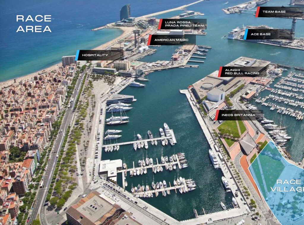 La zona de regatas, tanto para las Challenger Selection Series (serie de regatas de selección de retador) como para el America’s Cup Match (el duelo entre el defensor y el retador), ha sido acordada con el Capitán Marítimo de Barcelona y está situada al sur de la ciudad, a lo largo de la playa de Barcelona, ofreciendo a los espectadores una perfecta tribuna natural a lo largo de la costa.