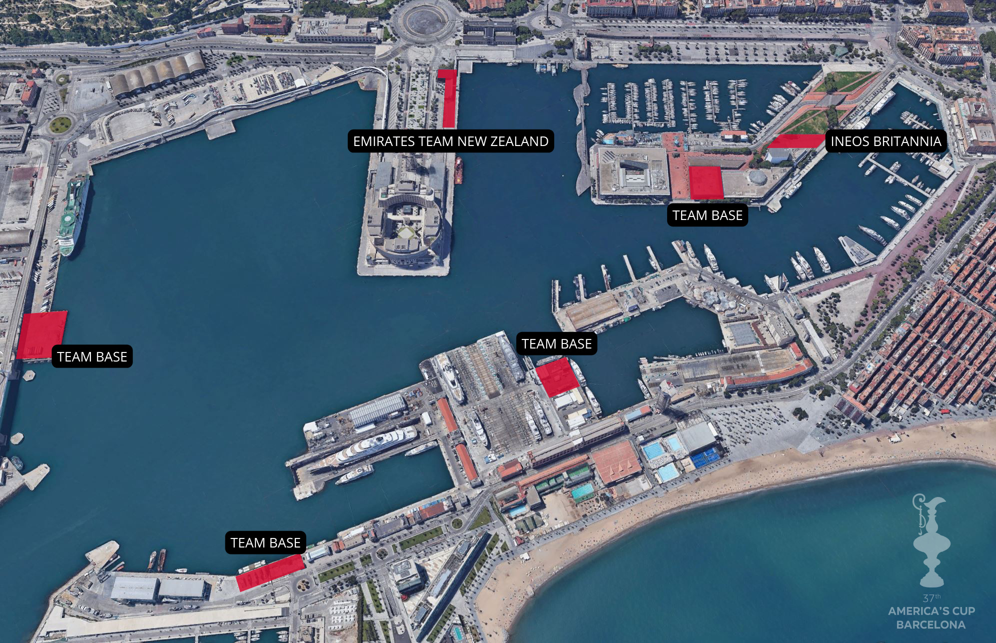 Según un comunicado de la organización, identificar los espacios requeridos satisfactorios para todos los equipos inscritos y comunicar los requisitos de manera efectiva ha supuesto un gran esfuerzo y mucho espíritu de colaboración entre el Port de Barcelona y AC37 Events Limited (ACE). La Autoridad Portuaria ha estado trabajando en estrecha colaboración con el personal clave de ACE desde el momento de la confirmación de la sede, y ha proporcionado un plan mucho más completo y detallado que en ninguna otra edición en esta etapa del ciclo de la Copa América.