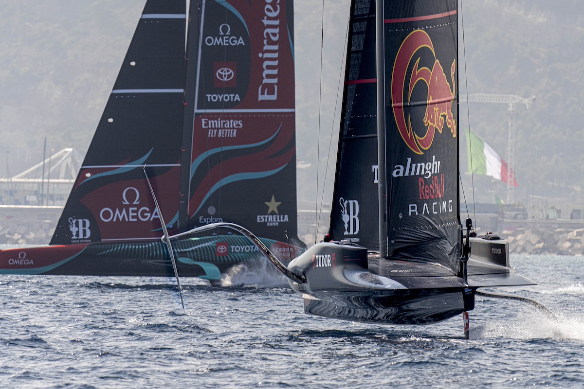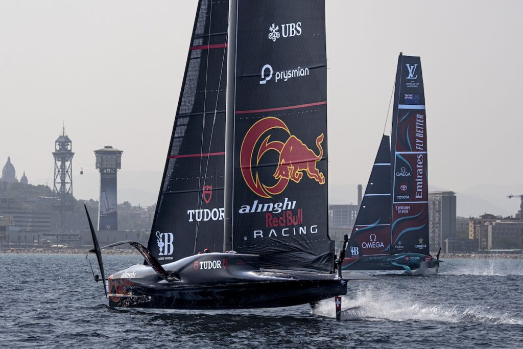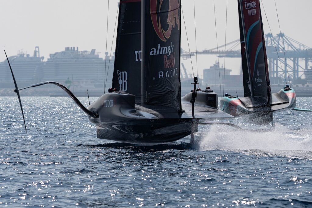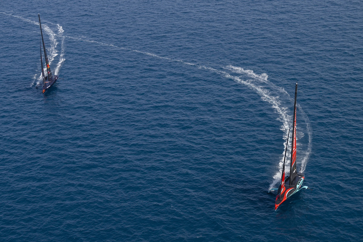 Los británicos y los suizos también han tenido alegrías, anotando sus primeros puntos de la regata. INEOS Britannia ha disfrutado de una impresionante victoria en la regata inaugural contra Alinghi Red Bull Racing, donde el potencial de «Britannia» se ha visto claramente reflejado. Mostrándose rápidos tanto en las ceñidas como en las empopadas, el equipo de Sir Ben Ainslie se ha asegurado el liderazgo al final de la primera manga y no ha mirado atrás, llegando con una ventaja de 33 segundos.