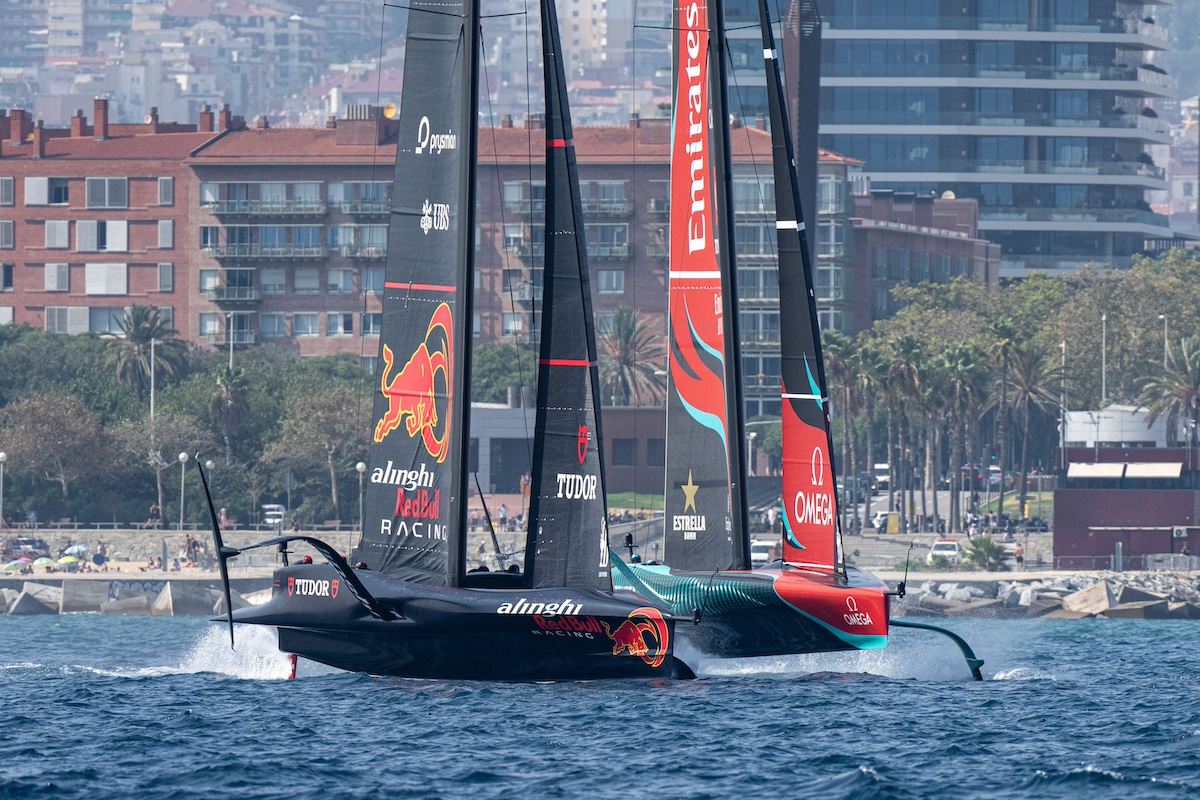 Los británicos y los suizos también han tenido alegrías, anotando sus primeros puntos de la regata. INEOS Britannia ha disfrutado de una impresionante victoria en la regata inaugural contra Alinghi Red Bull Racing, donde el potencial de «Britannia» se ha visto claramente reflejado. Mostrándose rápidos tanto en las ceñidas como en las empopadas, el equipo de Sir Ben Ainslie se ha asegurado el liderazgo al final de la primera manga y no ha mirado atrás, llegando con una ventaja de 33 segundos.