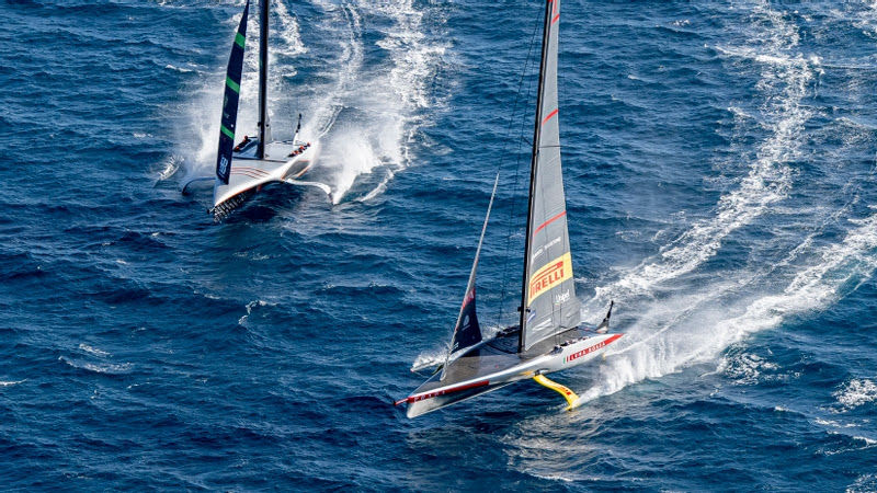 INEOS Britannia y Luna Rossa Prada Pirelli, los destacados finalistas de la Louis Vuitton Cup, se han mantenido a la espera antes de la regata de hoy, mientras un sólido viento de garbí soplaba frustrantemente por encima de los 21 nudos.