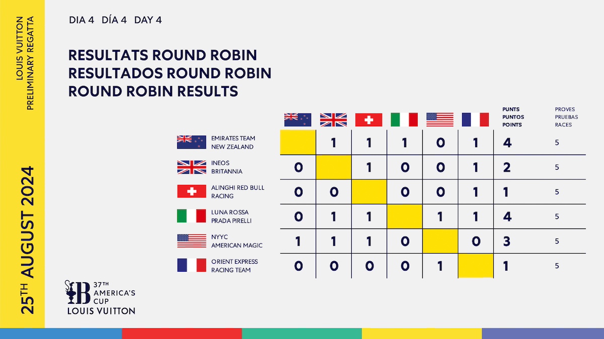Para INEOS Britannia y Orient Express Racing, ambos equipos llegaban al día de hoy con algo que demostrar y un punto que ganar. La presión se hizo sentir en ambos equipos y los primeros errores dieron ventaja a los franceses, pero el equipo británico de Sir Ben Ainslie ha mantenido la presión y ha ido ganando terreno hasta conseguir una ventaja que ya no ha abandonado.