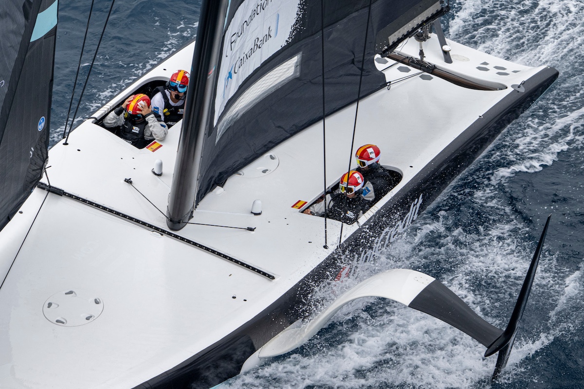 Antonio Torrado, trímer de babor, destacaba la estrategia del equipo. “Ha sido un día muy complicado porque había muy poquito viento, con lo que despegar es difícil, pero una vez volando ya es más sencillo. Nuestro objetivo era mantenernos volando y no mover demasiado mucho las velas ni los foils para no desgastar las baterías y lo hemos conseguido. Hemos hecho una buena regata, la verdad”.