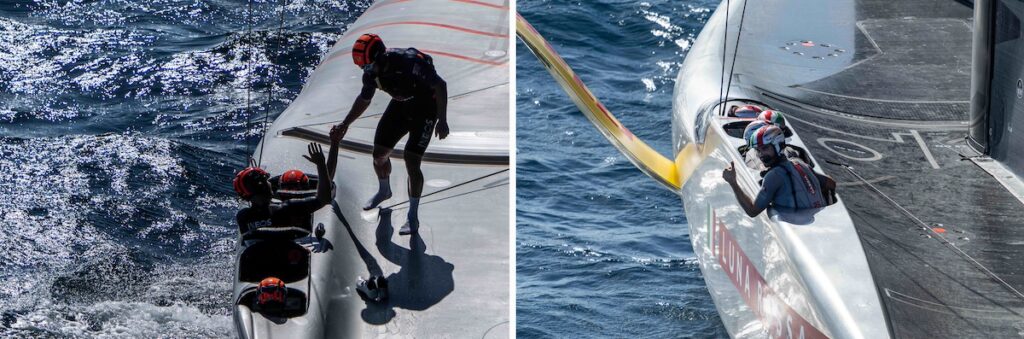 Con la ventaja del derecho de paso, Luna Rossa ha aprovechado la virada de vuelta y, con INEOS Britannia ahora a sotavento, ha conseguido una ventaja que ya no abandonaría en ningún momento, después de ganar aún más guiando a INEOS Britannia hacia la izquierda del campo de regatas en las aproximaciones finales a la baliza de barlovento.