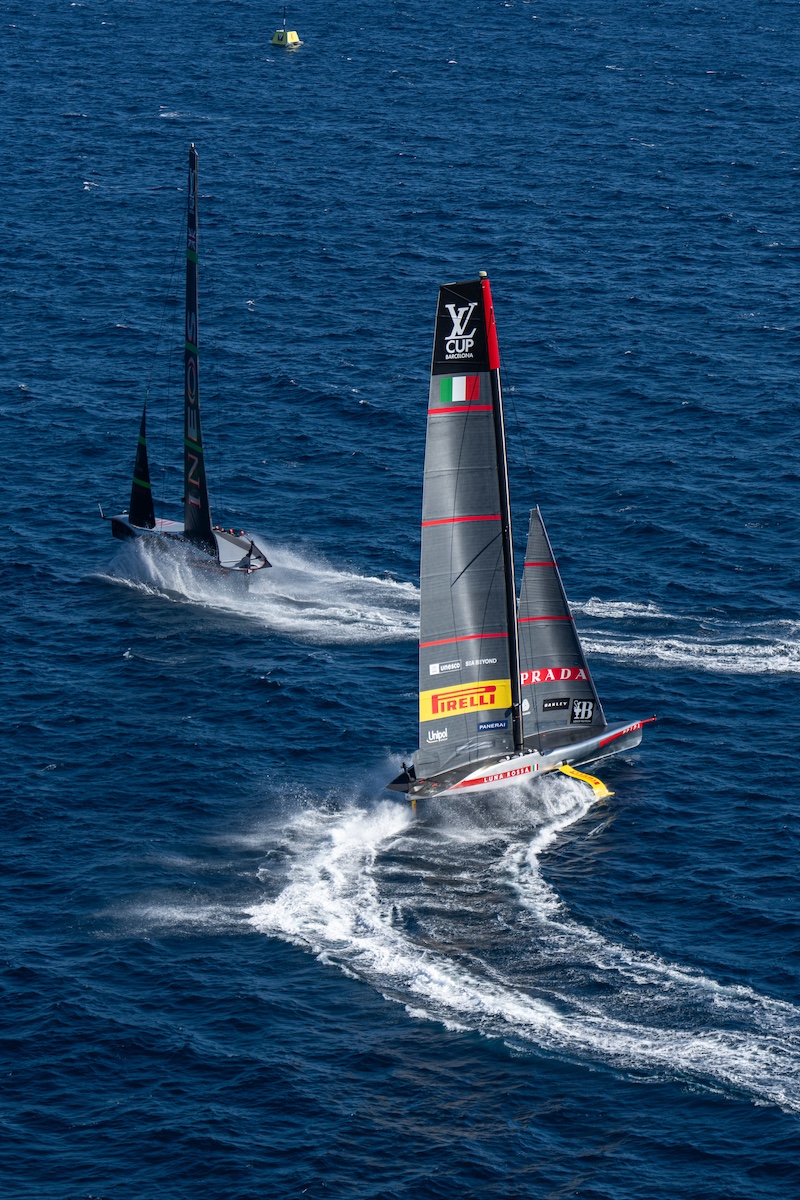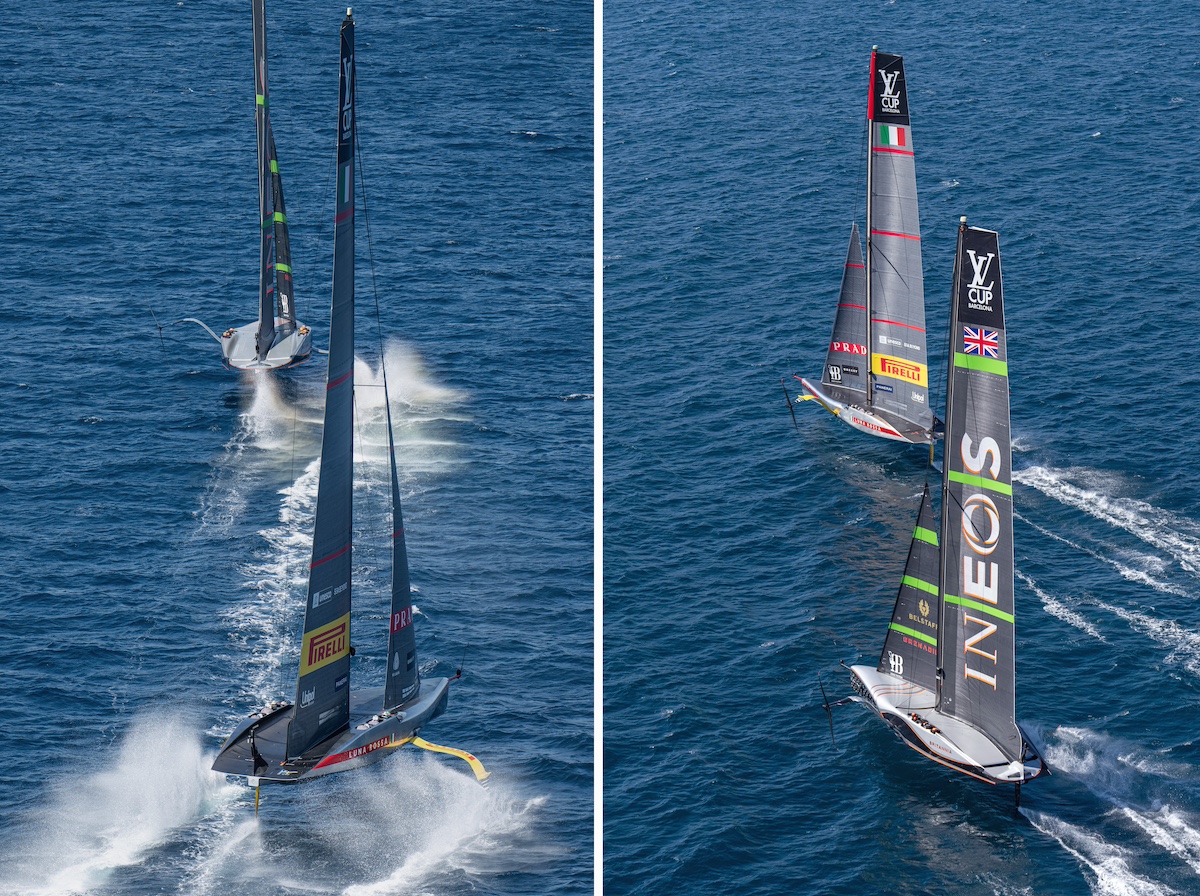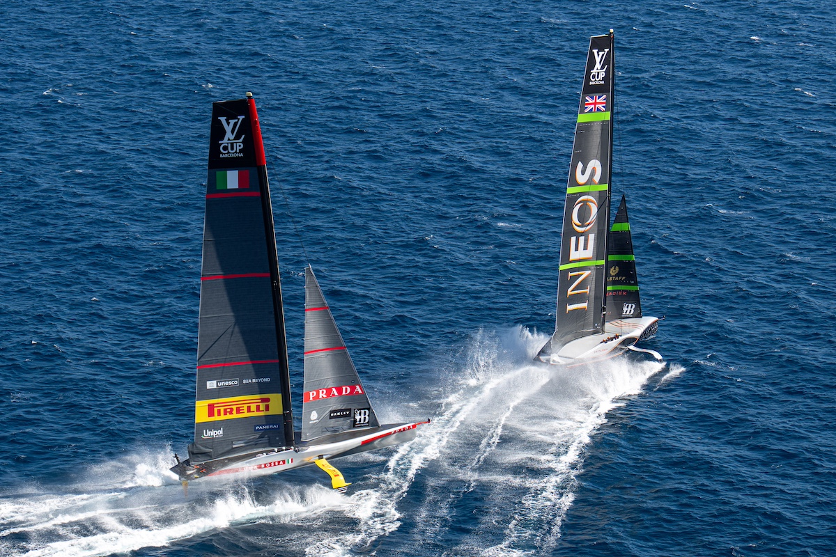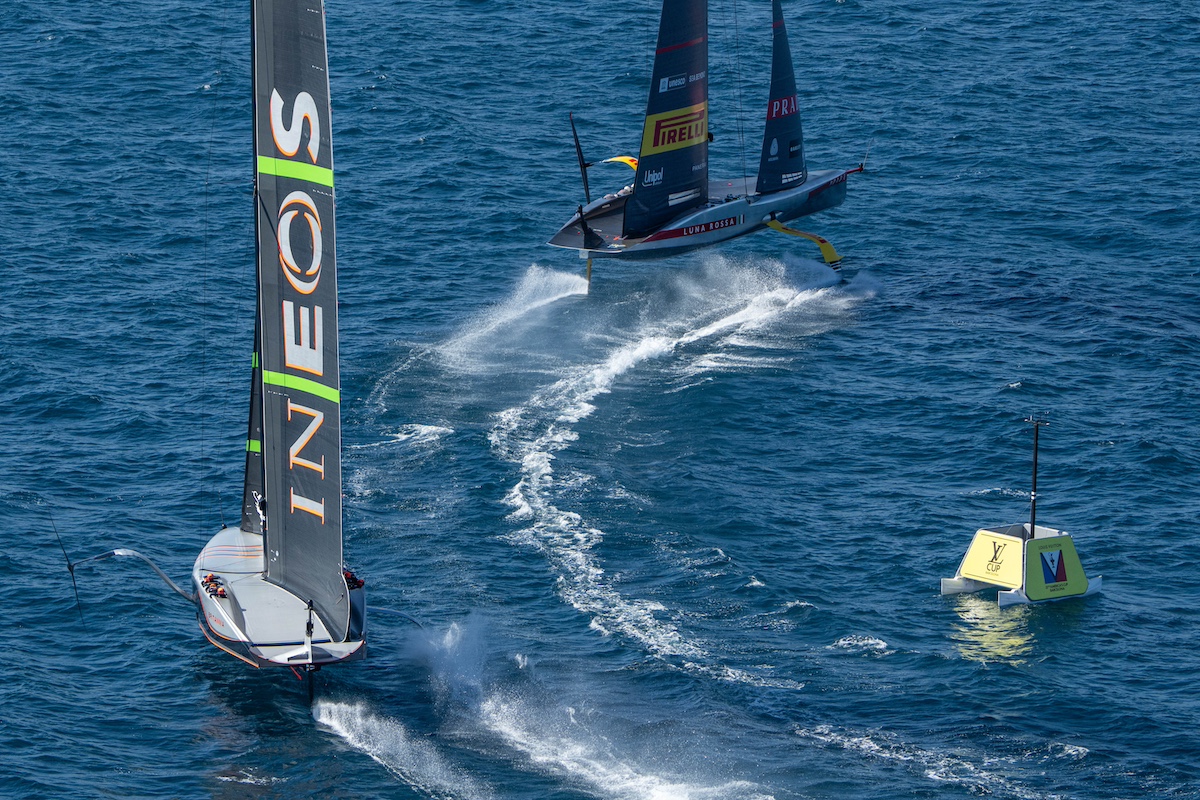 Con la ventaja del derecho de paso, Luna Rossa ha aprovechado la virada de vuelta y, con INEOS Britannia ahora a sotavento, ha conseguido una ventaja que ya no abandonaría en ningún momento, después de ganar aún más guiando a INEOS Britannia hacia la izquierda del campo de regatas en las aproximaciones finales a la baliza de barlovento.