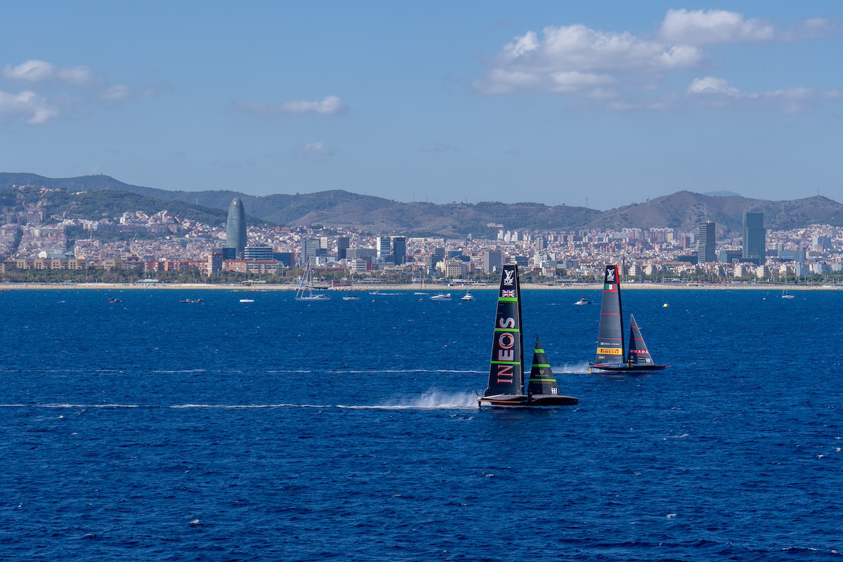 Ha habido un viento de garbí (suroeste) justo por debajo de los 21 nudos. Con el agua relativamente plana, las dos salidas se han dado a tiempo y las regatas se han desarrollado bajo un cielo despejado y con la impresionante playa de Barcelona como telón de fondo. Los aficionados británicos e italianos que han viajado a Barcelona han abarrotado el Race Village y las Fanzones, animando a sus compatriotas con pasión y reflejando la acción en el agua.