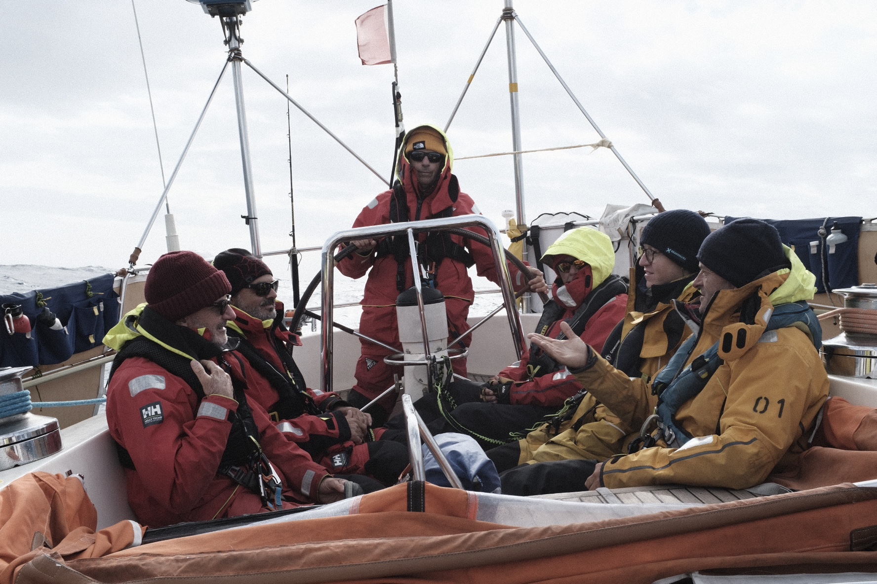Aquella primera borrasca iba acompañada de vientos de 35-40 nudos. Más adelante han superado situaciones mucho más duras, con vientos sostenidos de 40-45 nudos y rachas de 50 o más y olas de 10 metros (“yo he visto 52 nudos de viento real en el anemómetro”, asegura Cañardo). Y el patrón reconoce que pese a ello no ha tenido sensación de peligro a bordo: “Decir que navegar con 50 nudos no es peligroso es inconsciente; pero siempre hemos mantenido el control, con la tripulación a gusto, sin ansiedad”.
