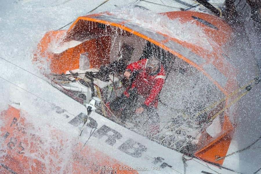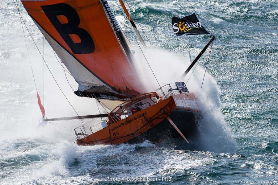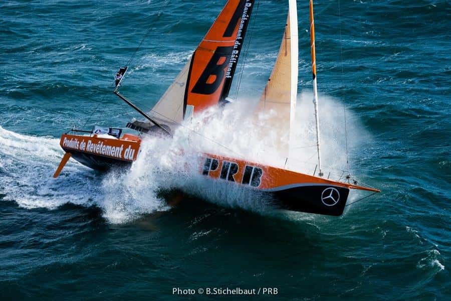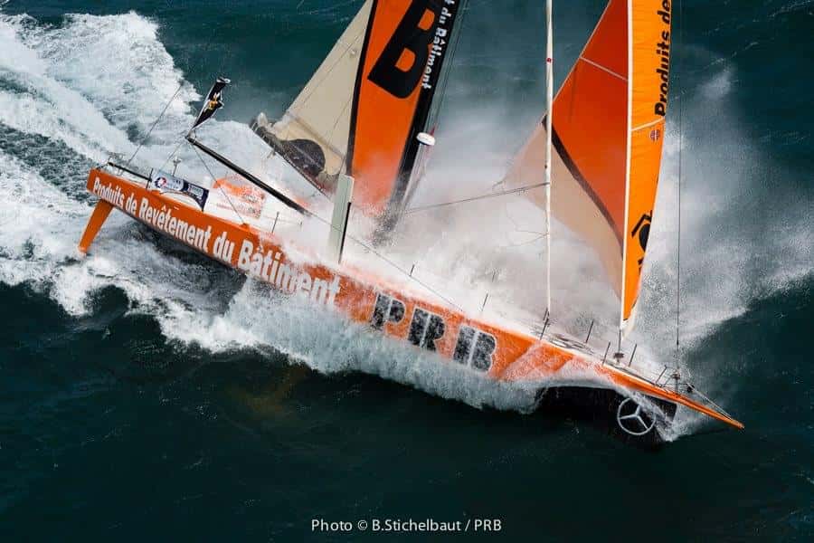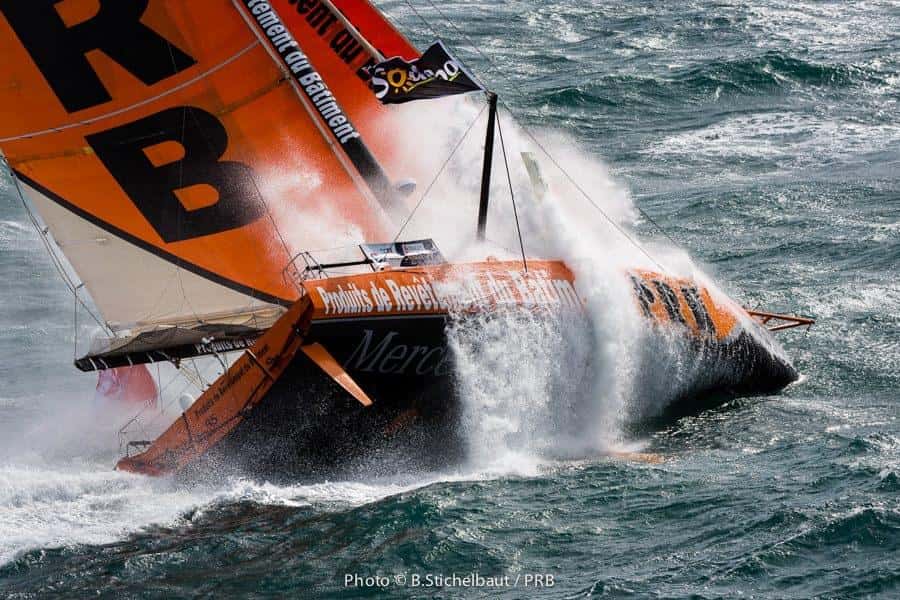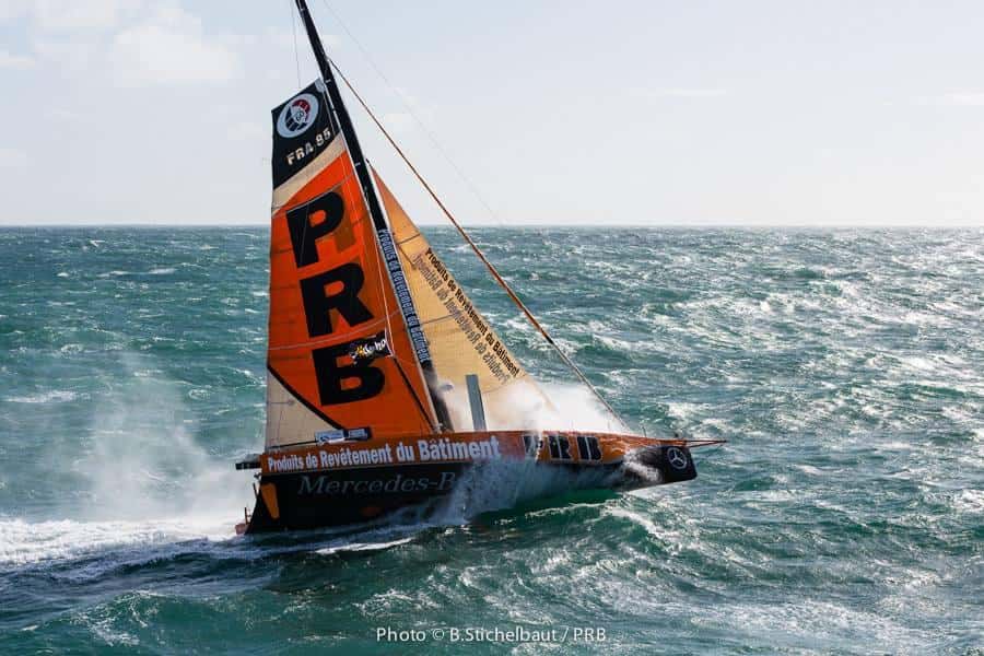 Vincent Riou aprovechó las excelentes condiciones meteorológicas en Port La Forêt para estrenar su nuevo IMOCA 60. Los 35 nudos de viento que tuvo durante el estreno del barco en al agua hicieron las delicias de Riou, vencedor de la Vendée Globe 2004-2005 , y del fotógrafo Benoît Stichelbaut que capturó unas espectaculares imágenes. Aquí os dejamos algunas fotografías que lo demuestran
