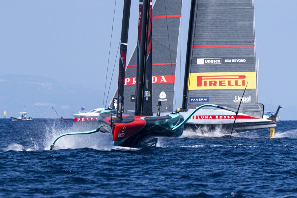 En la última regata del día, Luna Rossa Prada Pirelli se ha enfrentado al Orient Express Racing Team, que ha demostrado hoy el enorme potencial de su AC75. Algunas tácticas astutas de match-racing en el primer tramo de ceñida y la capacidad de adoptar un modo de ataque desde la línea de salida, han dado a los italianos una ligera ventaja que han mantenido hasta el final, aunque los franceses les han mantenido a raya a lo largo del recorrido de seis tramos.