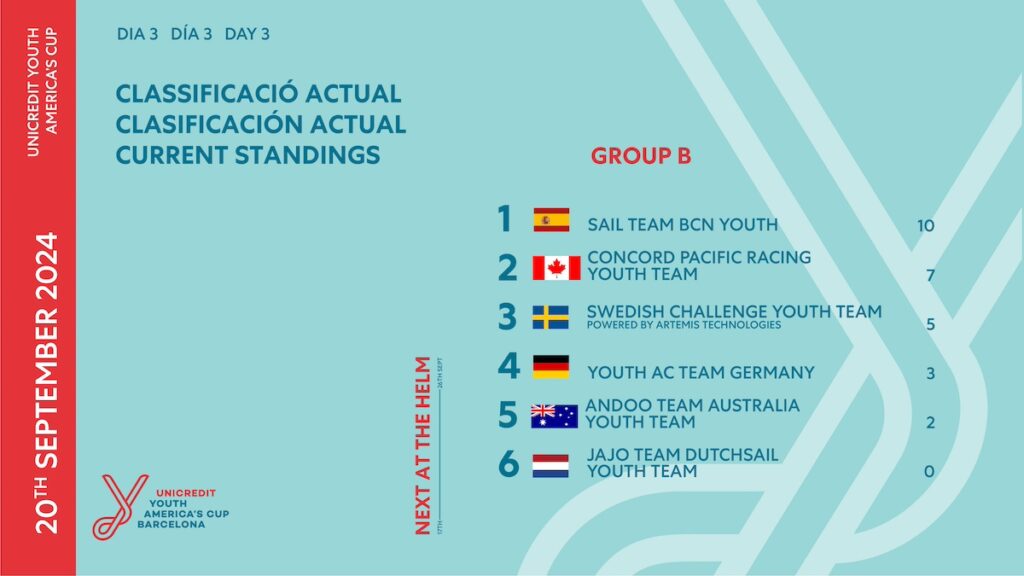 Para Suecia ha sido un golpe duro, ya que lo que parecía un segundo puesto asegurado se ha esfumado cuando el Concord Pacific Racing ha volado hacia la línea de llegada, relegando a los suecos al tercer puesto. No cabe duda de que vendrán días mejores para la tripulación sueca, que parece tener una gran habilidad en el manejo del barco y un gran sentido táctico en esta división.