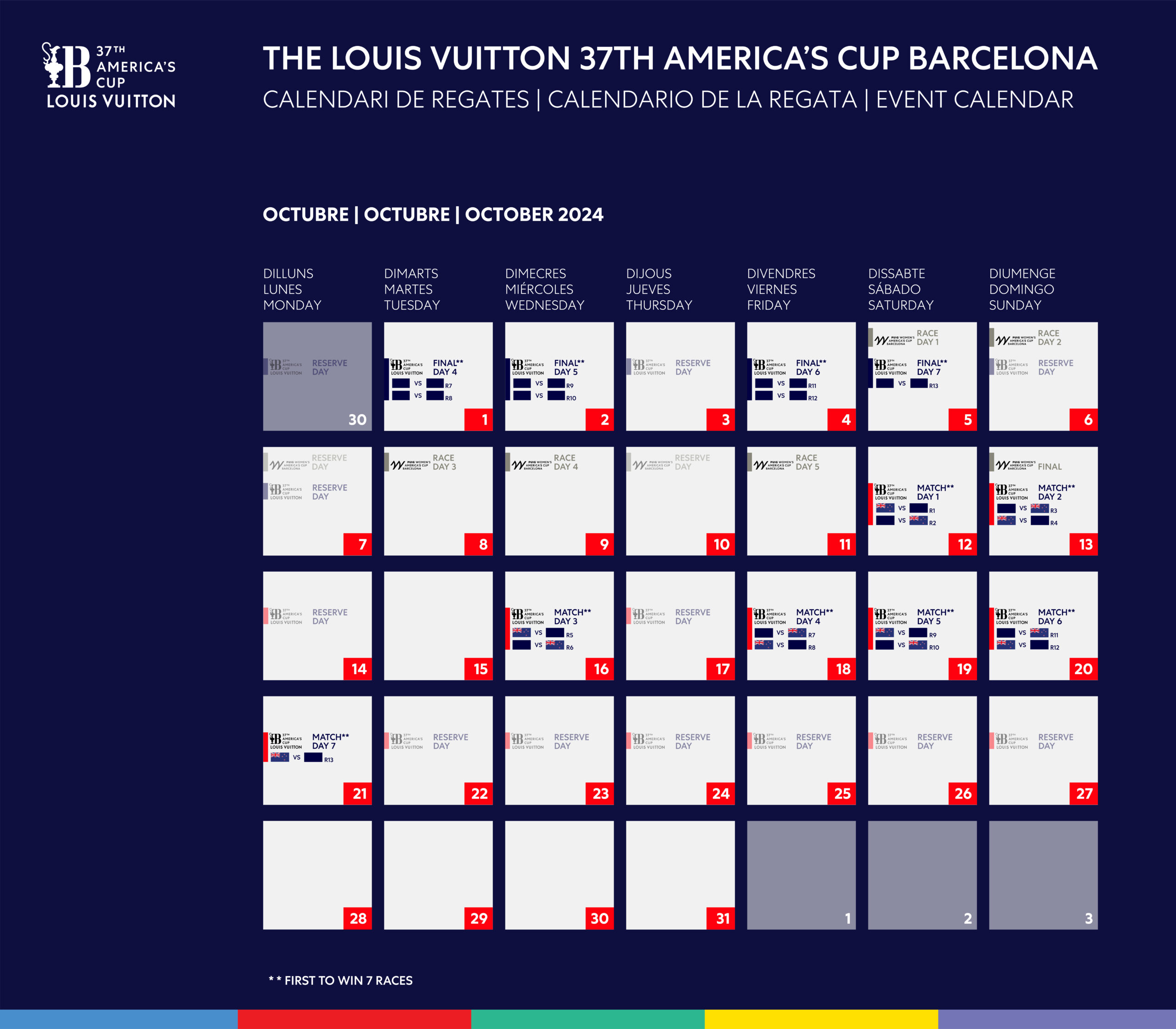 La Louis Vuitton Regata Preliminar comienza el jueves 22 de agosto de 2024 en Barcelona con los cinco Desafíos y el Defensor, Emirates Team New Zealand. Están programadas cuatro pruebas de uno contra uno cada día en formato match-race. Los dos mejores barcos llegarán a una Gran Final de uno contra uno, donde el ganador se lo llevará todo, el domingo 25 de agosto. Las pruebas comienzan cada día a las 14:00 CET. Es la primera vez que los AC75 se enfrentarán entre ellos y se descubrirán muchas cosas sobre velocidades relativas y destreza en regata.