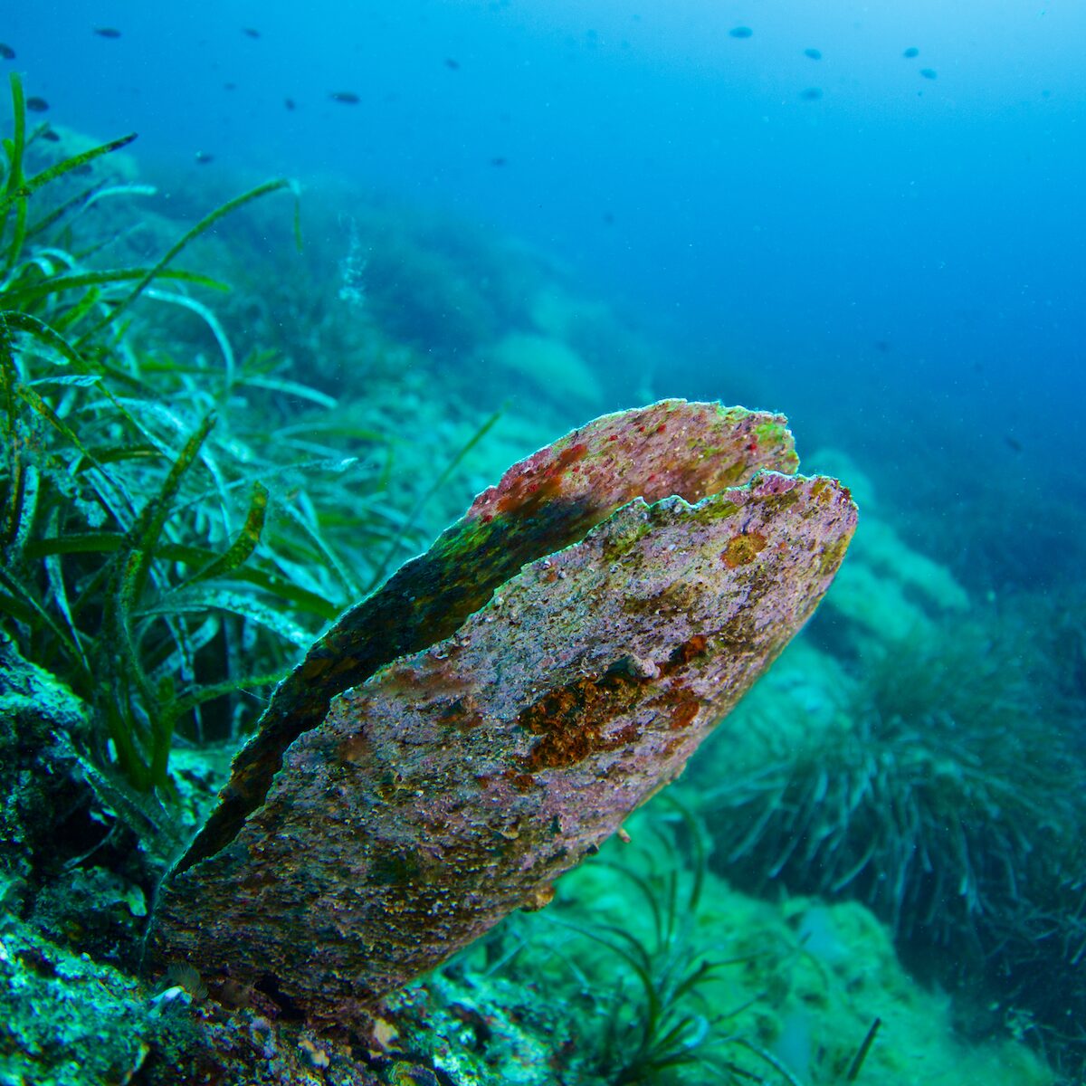 La Pinna nobilis, nombre científico de la nacra, puede llegar a medir 120 cm y vive preferentemente en praderas de fanerógamas marinas como la Posidonia oceánica o la Cymodocea nodosa. Es un endemismo del Mediterráneo con una historia que empieza en el Mioceno, hace 20 millones de años. Desde entonces ha sido observadora silenciosa de los grandes cambios de la biodiversidad de nuestro mar, inconsciente de que su futuro podía haber tenido los días contados. Esta especie emblemática del Mediterráneo es “solo” un invertebrado, un molusco bivalvo pariente de los mejillones, adornado de una bella y fina concha que le otorga un aire regio que inspiró al científico Linnaeus en 1758 a darle su nombre: Pinna nobilis, conocida como nacra. El bivalvo más grande del Mediterráneo y el segundo más grande del mundo. Con su envergadura es capaz de filtrar miles de litros de agua cada día, contribuyendo así a la claridad y calidad del mar. Así mismo, la amplia superficie de su concha la convierte en un epicentro de biodiversidad, proporcionando hábitats propicios para el crecimiento de diversos invertebrados y algas.