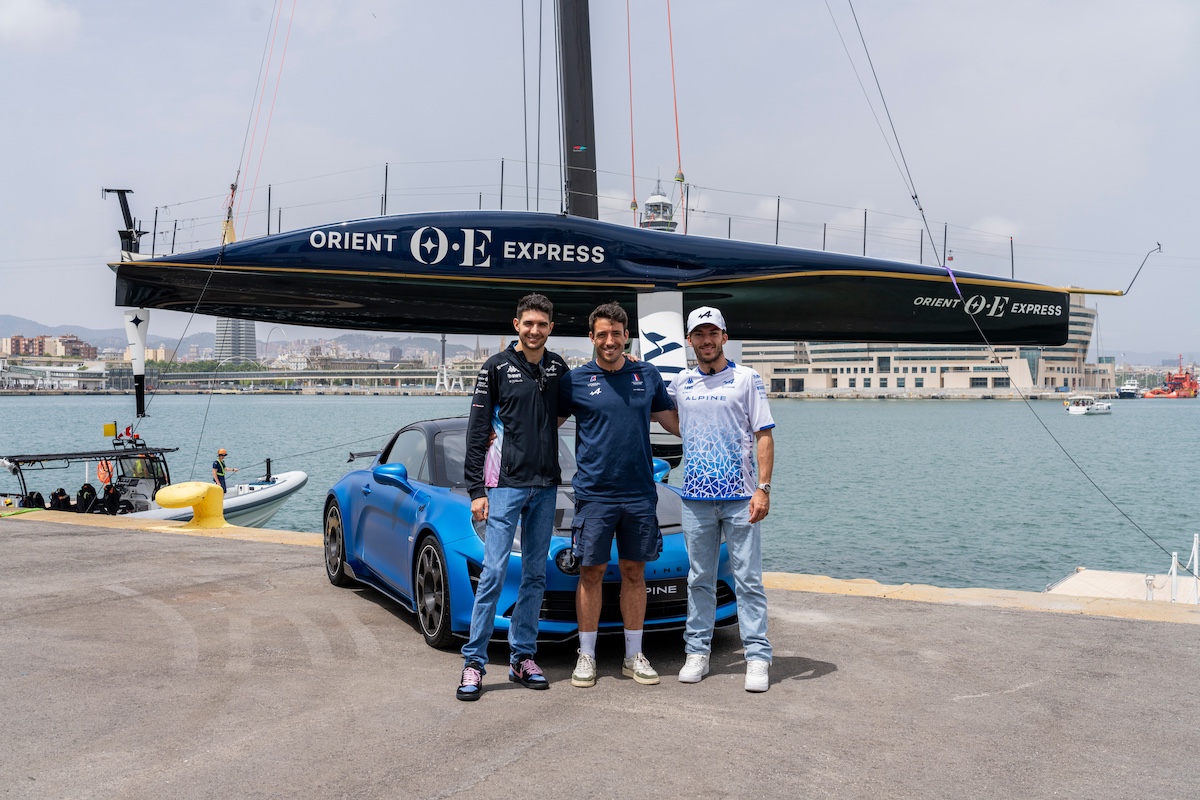 Marc Marquez (L) of Spain and Gresini Racing MotoGP and Daniel Ricciardo (R) of Australia and Visa Cash App RB meet before racing each other in Alinghi Red Bull Racing boats ahead of Spanish F1 weekend in Barcelona, Spain on June 19, 2024. // Samo Vidic / Alinghi Red Bull Racing // SI202406200067 // Usage for editorial use only //