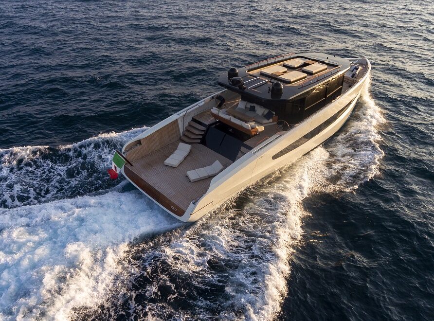 El Evo V8 ofrece cuatro zonas de descanso y convivencia al aire libre: la gran playa de popa, la terraza-comedor abierta en la cubierta principal, la zona de proa y el Sun-Roof.