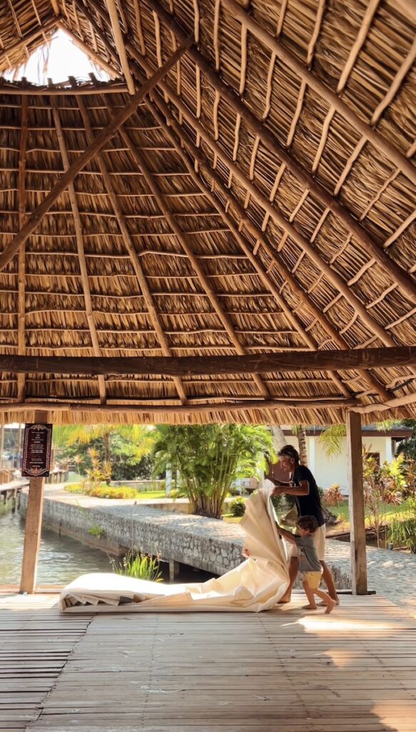 Al día siguiente, amanecimos celebrando el cumpleaños de nuestro hijo en ese escenario de ensueño, rodeados de naturaleza y regalos, con tarta incluida. Luego entramos a la marina, donde el Forquilladescansaría los próximos meses. Las marinas de Río Dulce están todas juntas, junto al pueblo. Los servicios son excelentes y más asequibles que otras opciones como Aruba o Curazao.