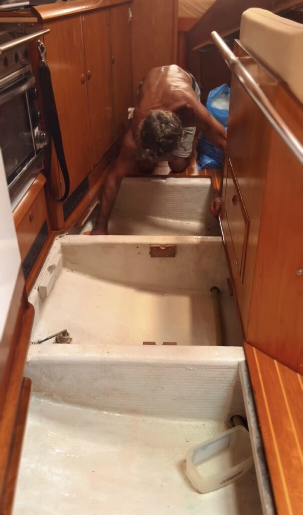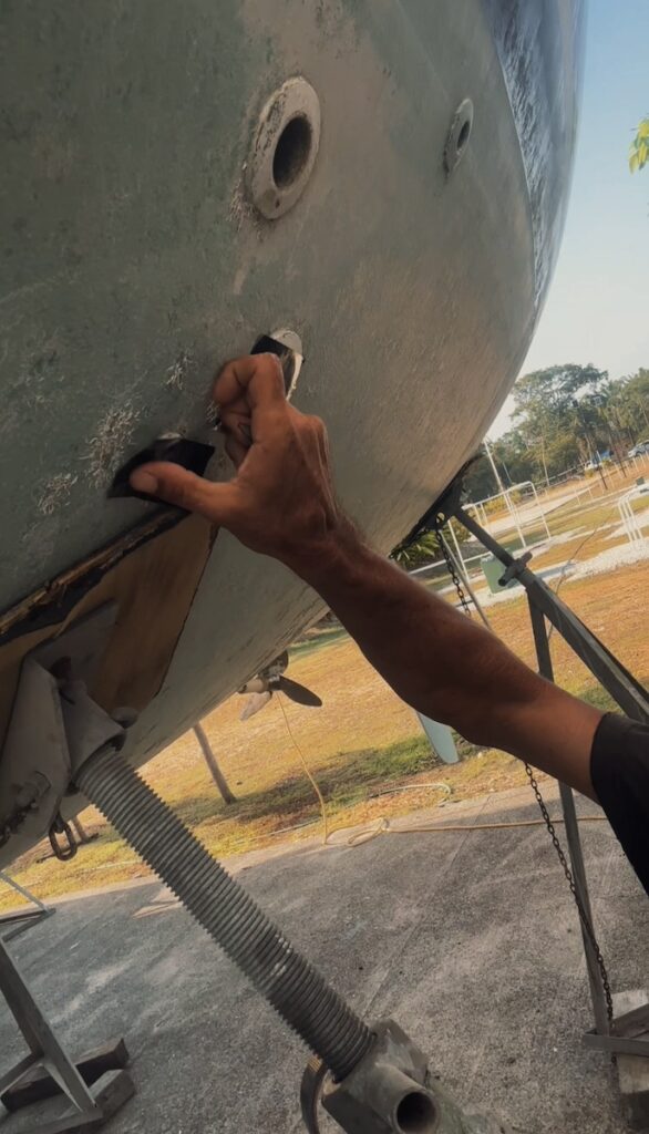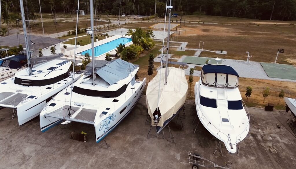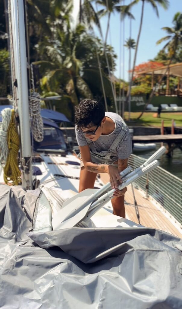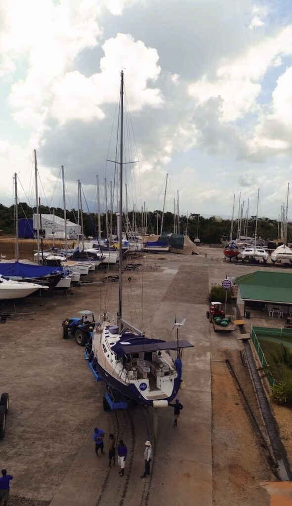 Durante tres semanas nos dedicamos a desmontar, limpiar y preparar el barco para su invernaje. Quitamos velas, cabos, defensas y todo lo que pudiera deteriorarse. Invernamos los motores y revisamos cada rincón del barco. Fue un trabajo diario intenso, bajo el calor sofocante del trópico, aliviado por los baños en la piscina de la marina.