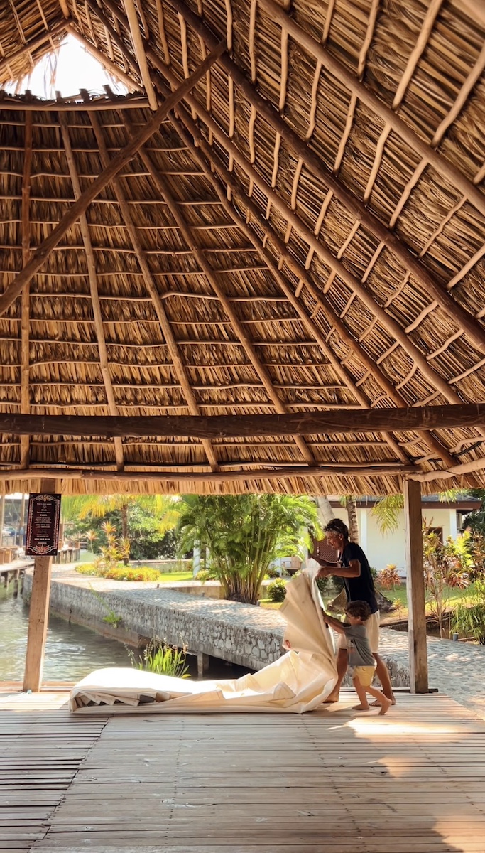 Mandamos hacer una funda integral para protegerlo del sol y la lluvia. Dejamos las baterías activas con dos deshumidificadores funcionando las 24 horas y dos cámaras de vigilancia conectadas. Además, una persona irá a revisarlo una o dos veces al mes para mantenernos informados. Para nosotros era fundamental marcharnos con la tranquilidad de saber que el barco quedaba en las mejores condiciones posibles. Aunque Río Dulce es una zona muy bien protegida frente a los huracanes, el sol abrasador y las lluvias intensas de esta época son implacables. Además, nunca antes nos habíamos alejado tanto del Forquilla, ni en distancia ni en tiempo, así que cada decisión fue tomada con extremo cuidado. Nos fuimos con la satisfacción de haber hecho todo lo necesario para dejar nuestro hogar flotante bien preparado.