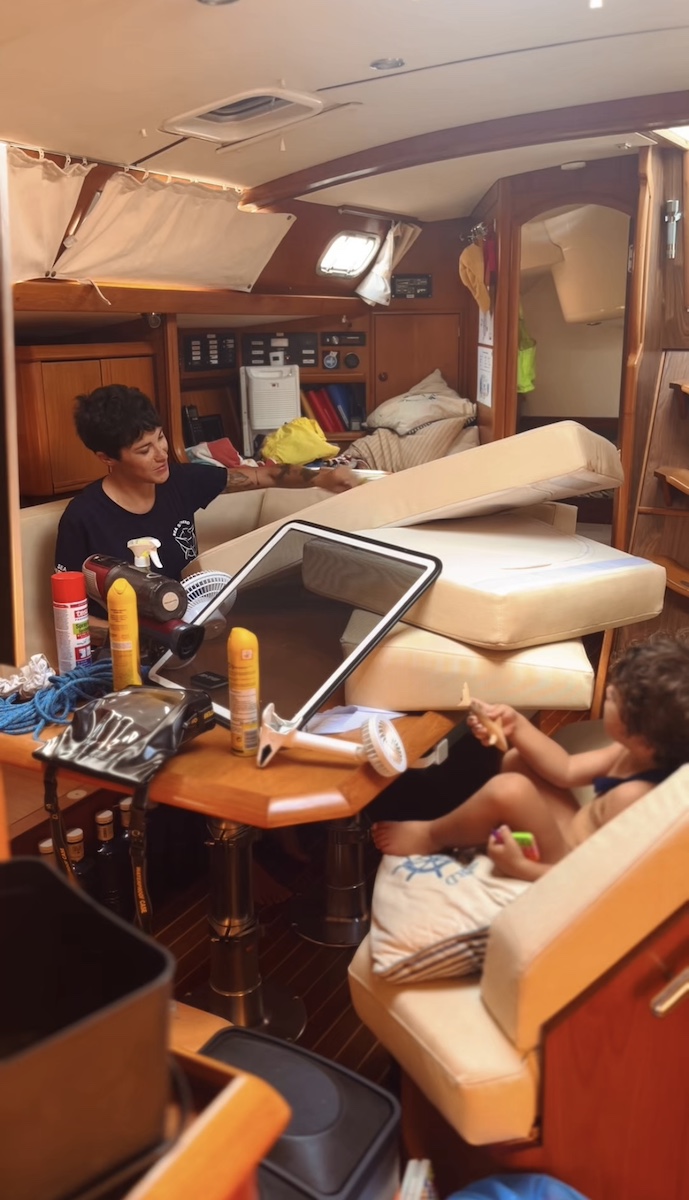 Una noche, fondeados antes de cruzar hacia Belice, ocurrió lo inesperado: explotó nuestra olla a presión. Estábamos todos a bordo, muy cerca de la cocina. El estruendo fue brutal, el barco se llenó de vapor en segundos, no se veía nada y nuestro hijo gritaba asustado. Conseguimos sacarlo a tiempo. Nadie salió herido, pero el susto fue mayúsculo. La explosión lo cubrió todo de partículas diminutas de patata y carne, así que retrasamos la partida para limpiar sin parar durante días. Sospechamos que la sal obstruyó la válvula y eso provocó el accidente. Sin duda, fue el momento más aterrador del viaje.