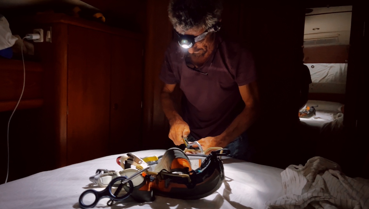En Murcia hicimos una parada de tres días en el Club Náutico Villa de San Pedro en la que nuestro patrocinador, Jean Paul Sails, nos hizo el favor de recibir durante los días previos a nuestra llegada varios paquetes para nosotros, por lo que pudimos instalar, por fin, la antena Starlink con un soporte para caña de pescar y un adaptador de tubo disponible en la propia web del fabricante. Además, hicimos una revisión y puesta a punto de la jarcia.